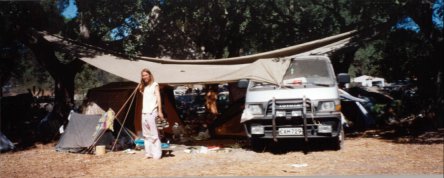 The camp from a different direction. Protection from the sun was really needed and car and tents